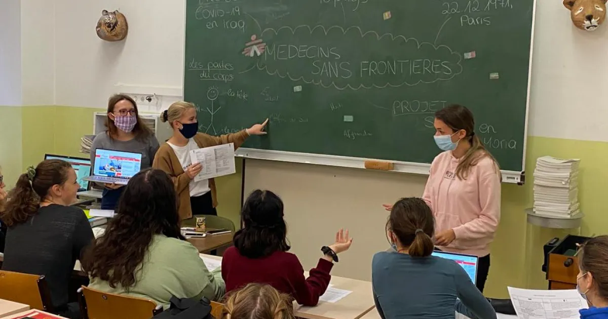 Auf die Idee kamen die Schülerinnen, weil sie wissen, dass in vielen Einsatzgebieten der Hilfsorganisation Französischkenntnisse sehr wichtig sind. Mit Vokabellisten und -training bereiten sie ihre Mitschülerinnen im Freifach auf den Vortrag vor. Online berichtet dann eine Mitarbeiterin während des Unterrichts von Ärzte ohne Grenzen auf Französisch und beantwortet Fragen der Schülerinnen.