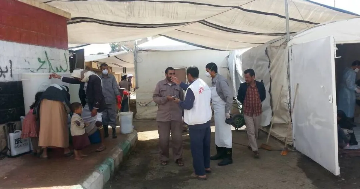 MSF teams set up a cholera treatment unit in Khamer, Amran governorate