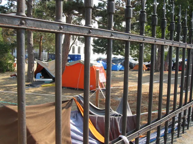 Traiskirchen, 21.08.2015: Ein Blick auf das Gelände der "Bundesbetreuungstelle Ost". Die medizinische und psychosoziale Versorgung der Ankommenden ist derzeit völlig unzureichend und muss dringend ausgeweitet werden.