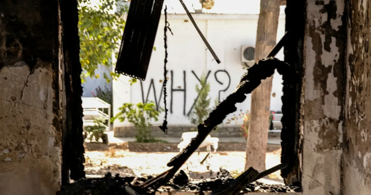 Kundus, Afghanistan, 17.10.2015: "Warum?", fragt dieser Schriftzug auf den Trümmern unseres ehemaligen Krankenhauses in Kundus.