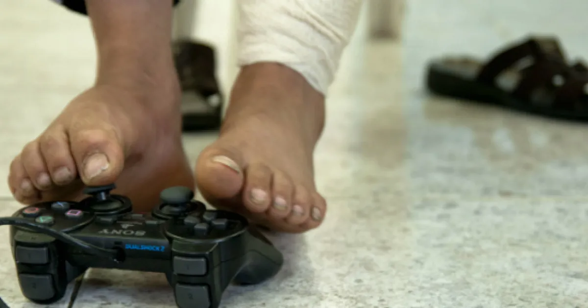 Amman, Jordanien, 29.07.2012: Der 13-jährige Omar Qassim Yass verlor bei einer Explosion in der irakischen Provinz Diyala beide Arme. Ein Jahr nach dem Vorfall wurde er in das Projekt von Ärzte ohne Grenzen in Amman aufgenommen, wo unser Team ihn drei Mal operierte. Nun kann er wieder schwimmen und Fußball spielen - doch die seelischen Wunden bleiben. Daher erhält er auch psychosoziale Unterstützung.