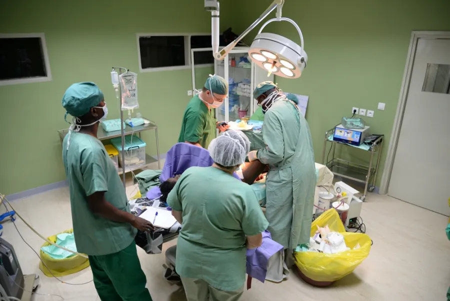 Madeleine und ihr medizinisches Team im Katiola-Krankenhaus haben eine lange und aufreibende Nacht hinter sich. Doch nun kann sie sich entspannen. Madeleine wurde aufgrund eines befürchteten Nabelschnurvorfalls einer „Stufe Rot“-Notoperation zugeteilt – der Vorfall hätte zum Ersticken des Kindes führen können. Doch die Nabelschnur hatte sich stattdessen um den Hals des Babys gewickelt. Glücklicherweise konnte das französisch-ivorische Chirurgieteam im brandneuen Operationssaal, der erst wenige Tage zuvor Ende April eröffnet worden war, einen Kaiserschnitt durchführen.