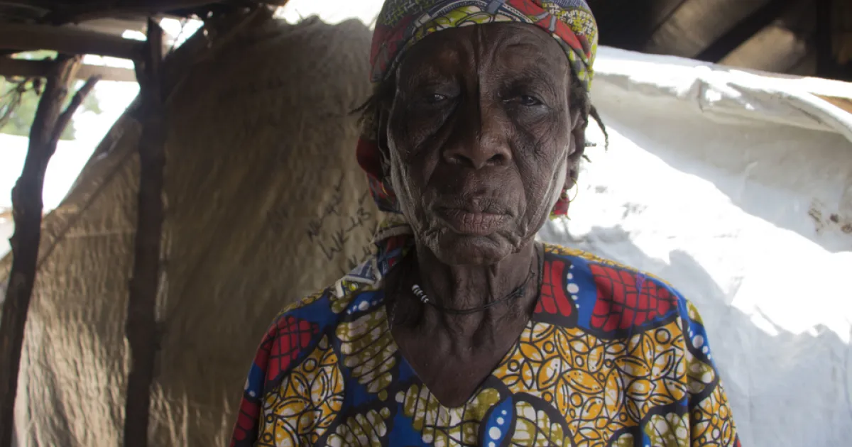Die 80-jährige Witwe Maryam Sofo lebt in einem Vertriebenenlager in Bama. „Das Leben hier ist zum Verzweifeln“, sagt Maryam. „Ich bin vor 20 Tagen hier im Camp angekommen, kurz nach der monatlichen Lebensmittel- und Hilfsgüterverteilung. Seit ich hier bin, habe ich noch nichts bekommen. Ich habe keine Lebensmittel, keine Decke, keinen Wasserkanister, keine Schlafmatte. Die Kleider, die ich trage, sind das Einzige, was mir geblieben ist.“