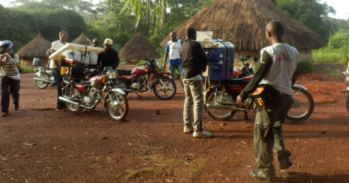 "Die Schlafkrankheit zu diagnostizieren ist ein komplexes Unterfangen, man benötigt ausgebildetes Personal, elektrisches Equipment und einen Kühlschrank. Jeeps können die Hauptwege im Wald befahren, wenn allerdings die Regenzeit beginnt, werden Brücken notwendig um die Tümpel und Bäche zu durchqueren. An den Stellen, wo keine Brücken vorhanden sind, verwenden wir Motorräder, die von bereitwilligen lokalen Fahrern gelenkt werden. Sechs Techniker und unsere gesamte Ausrüstung – inklusive eines Generators und Mikroskopen – werden in den Bamboo Wald gebracht, um Lichtungen zu erreichen, auf denen die Bevölkerung ihre Ernte anbaut."