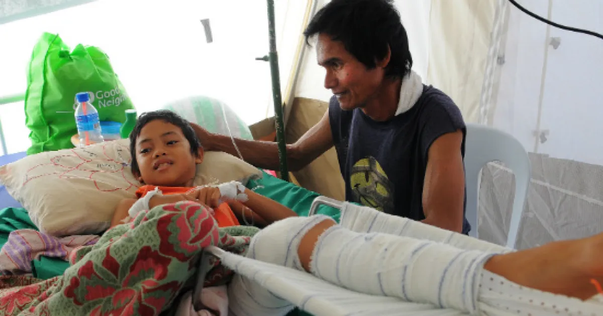 Nachdem der Sturm abgeflaute hatte brachte die Familie Ayron nach Guiuan um sein Bein von einem Arzt von Ärzte ohne Grenzen untersuchen zu lassen. Die Organisation bietet kostenlose medizinische Versorgung in einem aus Zelten aufgebauten Spital in Guiuan an sowie in einigen ländlichen Gesundheitszentren in der Umgebung. Ayron wurde sofort stationär aufgenommen. „Die Ärztin sagte, dass er sofort eine Operation benötigte, aber keine Amputation notwendig sei“, so Ruby. „Wir erzählten der Ärztin, dass wir kein Geld hätten um die Operation zu bezahlen – aber sie erklärte uns, dass unser Geld nicht haben wolle. Wir waren so glücklich.“
