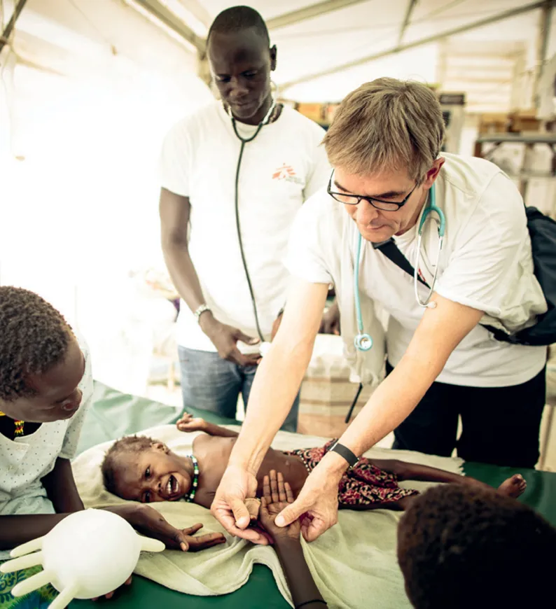Auf der Ernährungsstation in Bentiu arbeiten wir zum Beispiel auch mit angelernten südsudanesischen Helferinnen und Helfern aus dem Lager. Deshalb ist es wichtig, sich mit ihnen erst einmal auf die grundlegenden Dinge zu konzentrieren – also: Hygiene, Medikamente richtig dosieren, das Erkennen, wenn sich der Zustand eines Kindes verschlechtert und der Arzt dazu geholt werden muss. Die Kollegen sind unglaublich einsatzbereit. Das ist übrigens für mich das Wichtigste an der Arbeit mit Ärzte ohne Grenzen: dass jeder Mediziner immer ein Stück seines Wissens bei dem Personal vor Ort lässt.