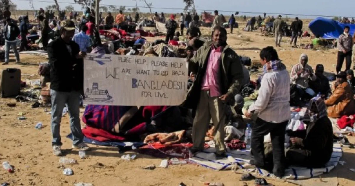 Der Konflikt hat diese Menschen in weitere lebensbedrohliche Gefahr gebracht. Seit dem Beginn der Kämpfe am 17. Februar 2011 sind 800.000 Menschen – hauptsächlich Menschen anderer Nationalitäten – aus dem Land geflohen, die meisten von ihnen nach Ägypten und Tunesien. Tausende haben auf der Flucht in den Norden über das Mittelmeer nach Europa ihr Leben riskiert. Mehr als 11.000 Menschen haben die italienische Insel Lampedusa erreicht. Mehr als 60.000 Menschen sind zudem gegen Süden durch die Wüste nach Niger und darüber hinaus geflohen.