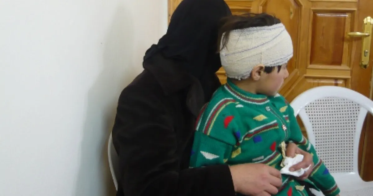 Syrien, 14.01.2013: Bei einem Artilleriefeuer wurde das neunjährige Mädchen schwer am Kopf verletzt, ein Granatsplitter steckte in der Wunde.