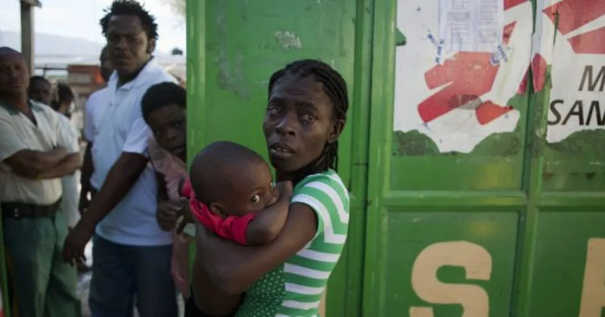 Port-au-Prince, Haiti, 11.11.2010: Eine Haitianerin bringt ihren an Cholera erkrankten Sohn in das Santa Caterina Spital in Cite Soleil.