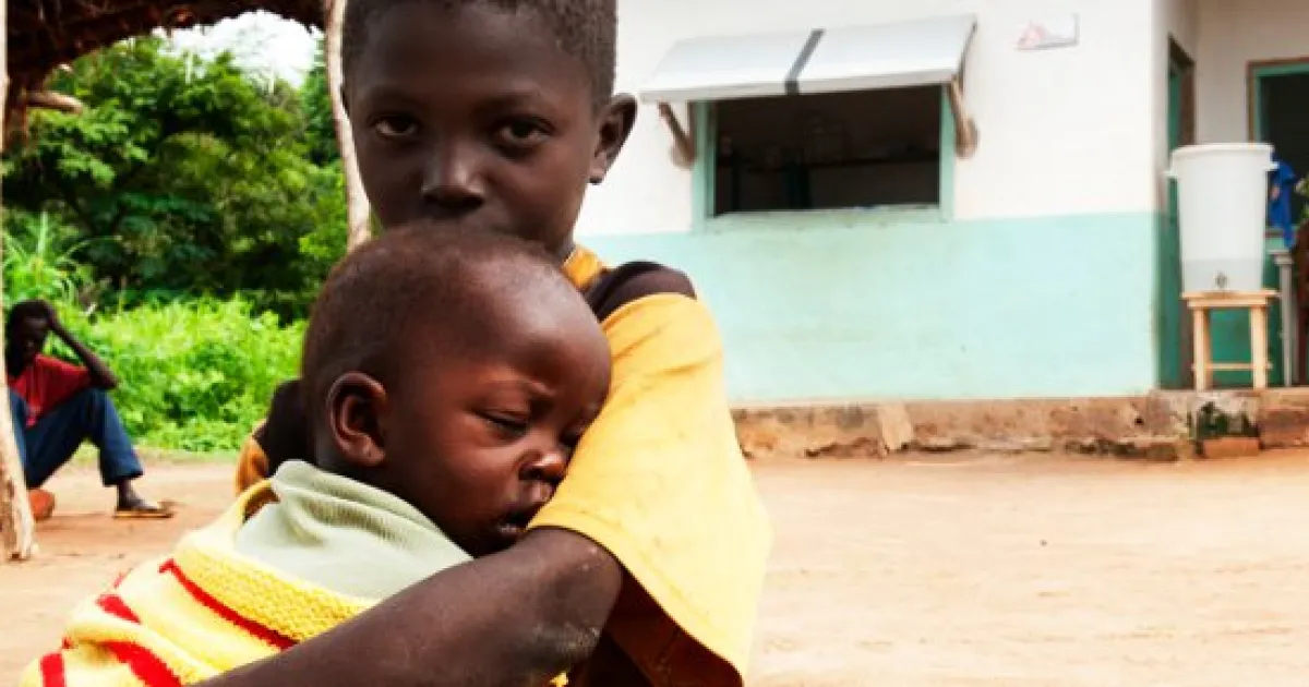 Batangafo, Zentralafrikanische Republik, 19.07.2010: Zwei Brüder warten vor dem Ärzte ohne Grenzen-Gesundheitsposten.
