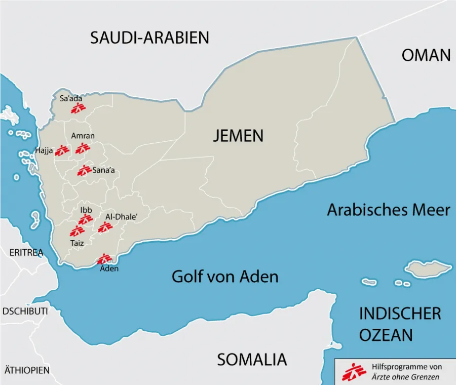 Im Jemen ist die humanitäre Lage aufgrund des anhaltenden Konflikts weiter katastrophal. Ärzte ohne Grenzen ist in mehreren jemenitischen Gouvernements aktiv. Die Projekte reichen von erster Nothilfe für Verletzte über lebensrettende chirurgische Eingriffe bis zur Unterstützung von Krankenhäusern und der Versorgung von Vertriebenen mit Wasser und Hilfsgütern. Seit Mitte März 2015 haben die Teams unter anderem mehr als 3.800 Kriegsverletzte versorgt.