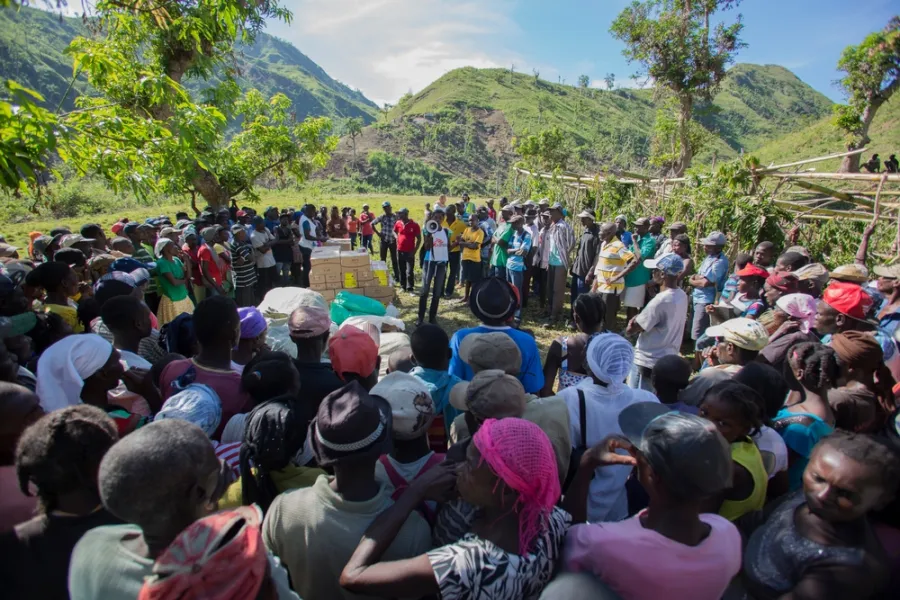 Nach dem Hurrikan: Verteilung von Hilfsgütern für Familien in Süd-Haiti