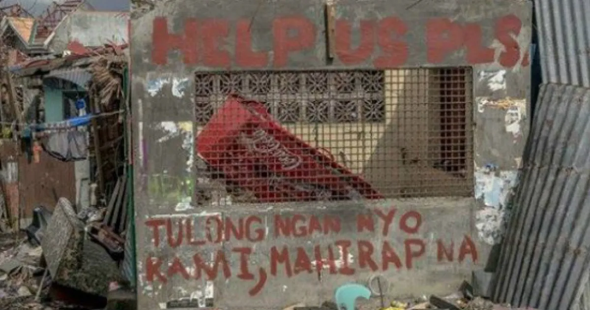 „Helft uns bitte" – Diese Worte hat ein Überlebender in der Stadt Tanauan in großen roten Buchstaben auf die Trümmer seines Hauses geschrieben. Tauauan ist eine kleine Stadt mit 50.000 Einwohnern und befindet sich etwa 20 Kilometer südlich von Tacloban auf der Insel Leyte. Die Stadt wurde zu 95 Prozent zerstört. Viele Menschen leben auf der Strasse, betteln für Wasser, Nahrung und Unterkunft. Während die Strassen in Tacloban fast vollständig geräumt sind, treiben in Tanauan immer noch Leichen in den Flüssen. Eine zwölf Meter hohe Welle spülte alles weg. Die Schutthaufen blockieren noch immer die meisten Strassen. Nur die Hauptstrasse wurde endlich geräumt, so dass Fahrzeuge mit Hilfsgütern nun passieren können.