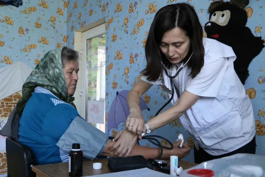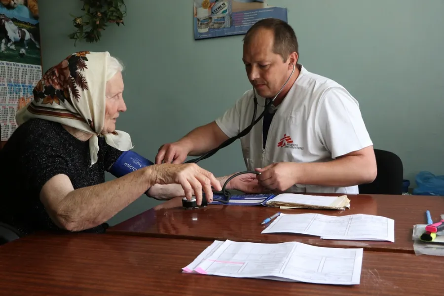 Ärzte ohne Grenzen spendete im Jahr 2015 Medikamente und Material an 350 medizinische Einrichtungen auf beiden Seiten der Frontlinie. Unsere Teams stellten auch die medizinische Versorgung von mehr als 9.900 Patienten mit konfliktbedingten Verletzungen sowie von über 61.000 chronisch Kranken sicher. Auch wurden 5.100 Geburten begleitet. Ärzte ohne Grenzen leistete in Zusammenarbeit mit dem Gesundheitsministerium 159.900 allgemeinmedizinische Sprechstunden und 12.000 psychologische Beratungen. Darüber hinaus betreiben wir Erste-Hilfe- und Wasser-Stationen an den Kontrollpunkten Nowotrojizke, Zaitseve und Mayors – so helfen wir den Menschen, die dort in langen Schlangen in der Sommerhitze warten müssen.
