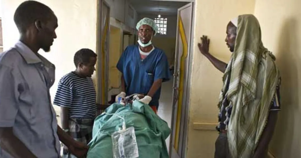 Galcayo, Somalia, 15.08.2011: Ein Patient mit Schusswunde wird in den Operationssaal im Krankenhaus von Ärzte ohne Grenzen im Süden der Stadt Galcayo gebracht.