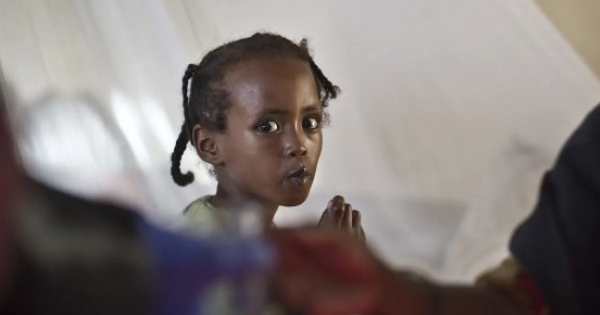 Galcayo, Somalia, 16.08.2011: Auch die sechs Jare alte Yurub war an Masern erkrankt. Als Folge davon leidet das Mädchen an Mangelernährung. Dank der Behandlung ist sie nun langsam auf dem Weg der Besserung.