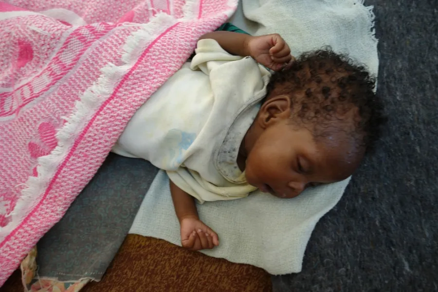 In den ersten zwei Monaten ihres jungen Lebens schlief die dreimonatige Mary James ohne Decke oder Matratze in einem Bettgestell aus Metall in einer kleinen, feuchten Unterkunft inmitten des überfüllten Vertriebenenlagers. Jetzt schläft sie in einem Krankenbett von Ärzte ohne Grenzen und kämpft um ihr Leben: