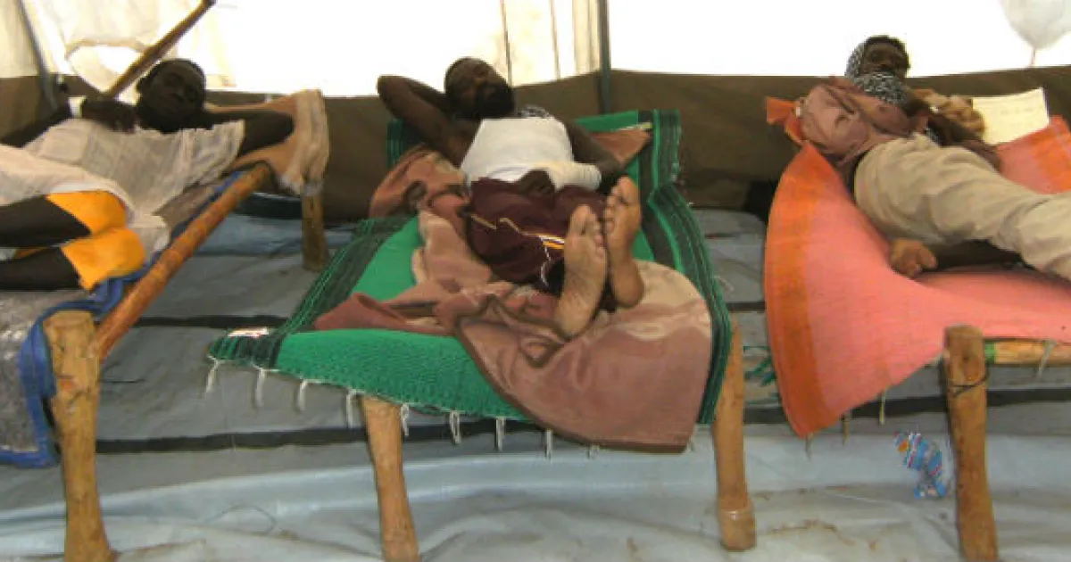 Tissi, Tschad, 24.07.2013: Verwundete Patienten liegen auf Bahren nachdem sie von Ärzte ohne Grenzen in einem örtlichen Krankenhaus in Tissi behandelt wurden.