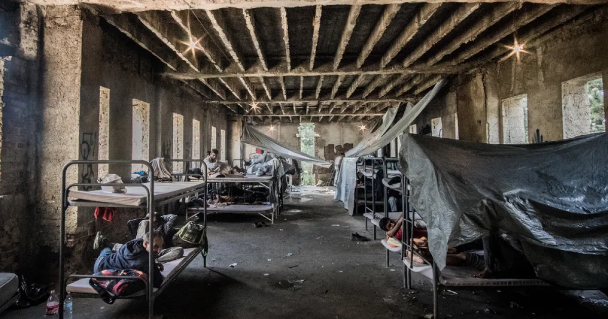 Am Rande der Stadt Bihac leben beispielsweise circa 3.000 Menschen in einem verfallenen Betongebäude und dem dazu gehörenden Areal. In dem fünfstöckigen, ehemaligen Studentenwohnheim klaffen Löcher in den Wänden, wo eigentlich Fenster wären. Auf dem Boden sind Schlamm- und Regenpfützen. Zelte wurden in den Gängen aufgebaut und Laken hängen von der Decke in dem Versuch ein Mindestmaß an Privatsphäre zu gewähren. Doch Menschen schlafen auch auf Decken auf dem Boden. Am bewaldeten Hang hinter dem Gebäude befinden sich noch mehr Zelte.