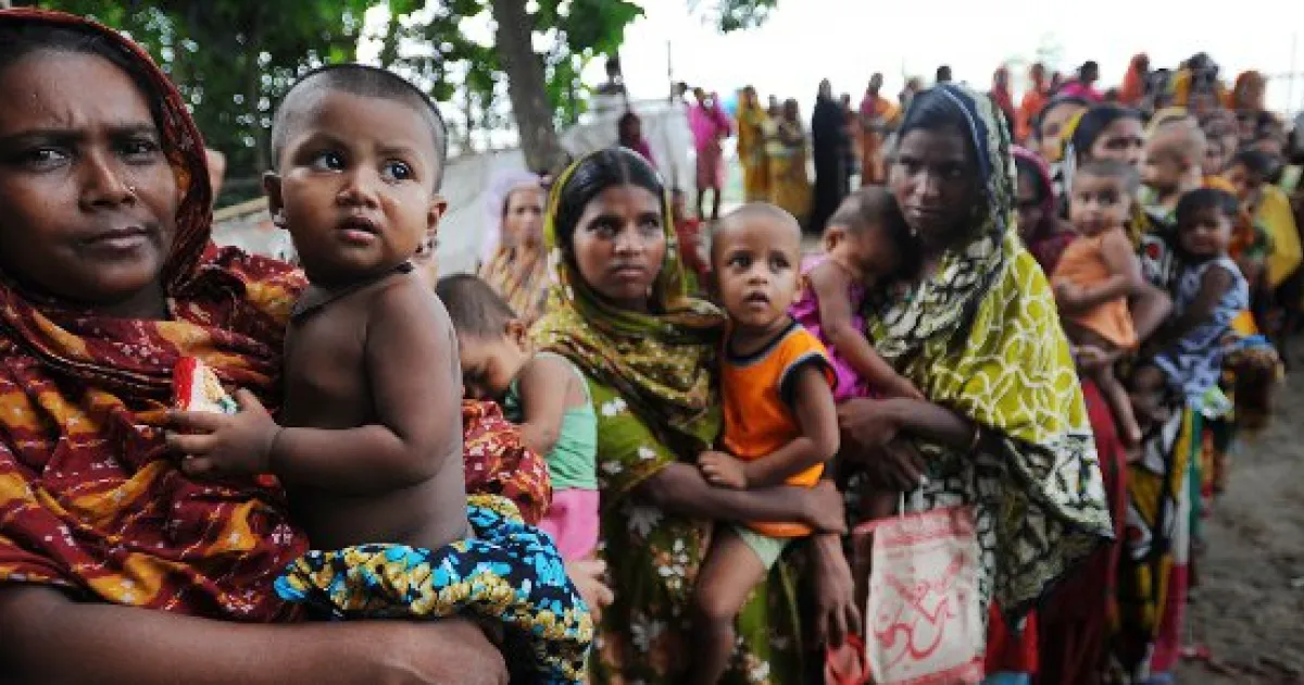 Dhaka, Bangladesch, 19.08.2010: Frauen warten mit ihren Kindern vor der Klinik von Ärzte ohne Grenzen im Slumgebiet Kamrangirchar.