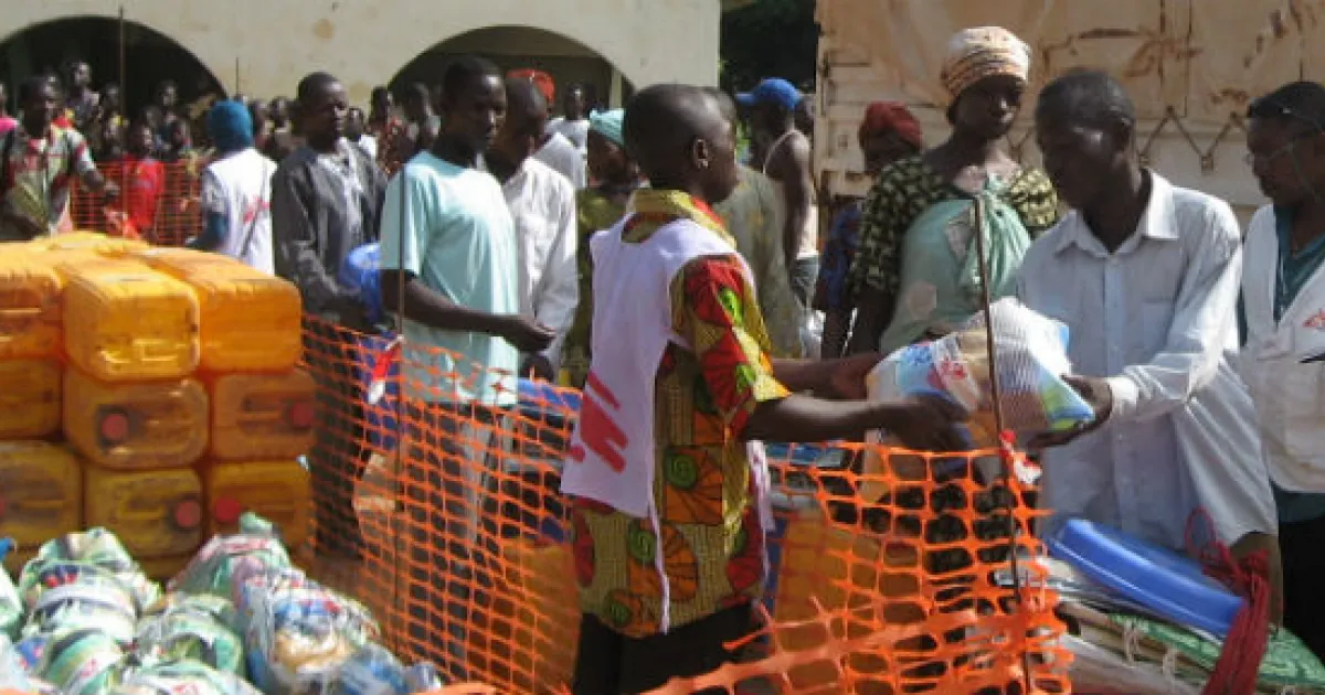 Die Teams von Ärzte ohne Grenzen haben in der Stadt Batangafo (Zentralafrikanische Republik) mehr als 5.000 Menschen, die nach schweren Kämpfen ihre niedergebrannten Dörfer verlassen mussten, mit wichtigen Hilfsgütern wie etwa Plastikplanen, Moskitonetzen und Decken versorgt.