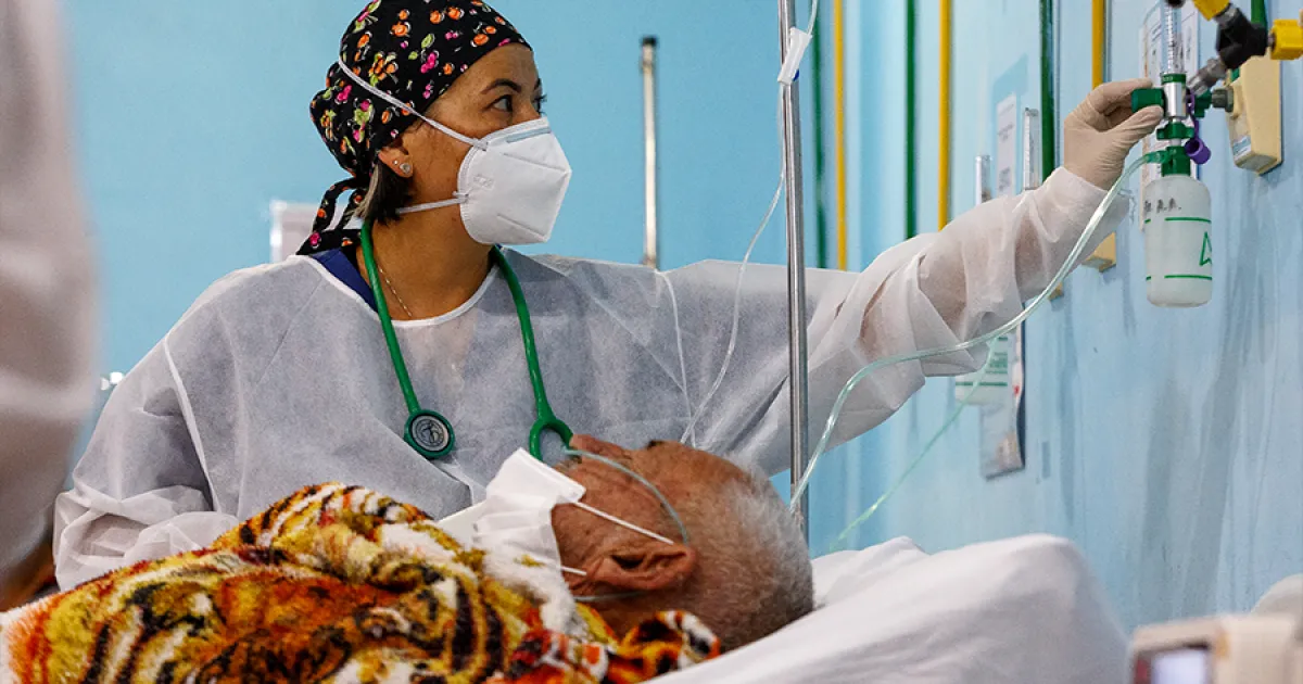 Eine Krankenpfelegerin kümmert sich um einen COVID-19 Patienten in Rondônia
