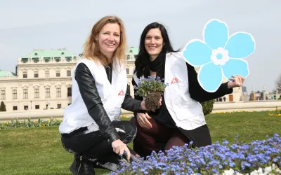 Mit einem Beet voller Vergissmeinnicht setzte am 14. April 2015 „Vergissmeinnicht.at – Die Initiative für das gute Testament“ ein Zeichen für das Engagement zahlreicher Spender und Spenderinnen.
