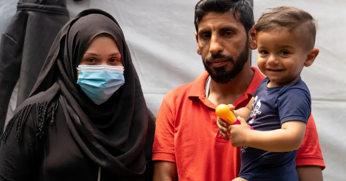 Jaber und seine Familie vor ihrem Zelt
