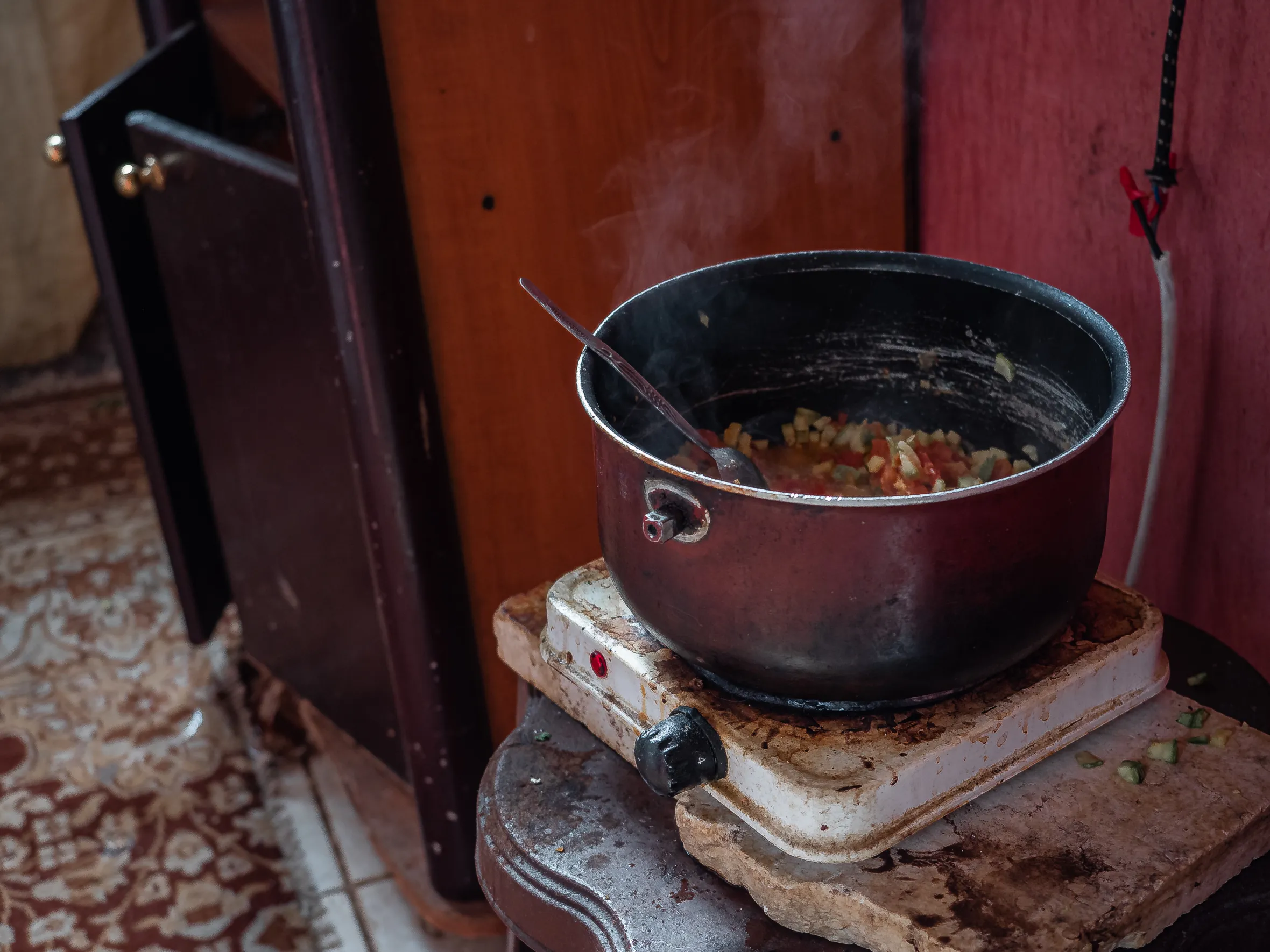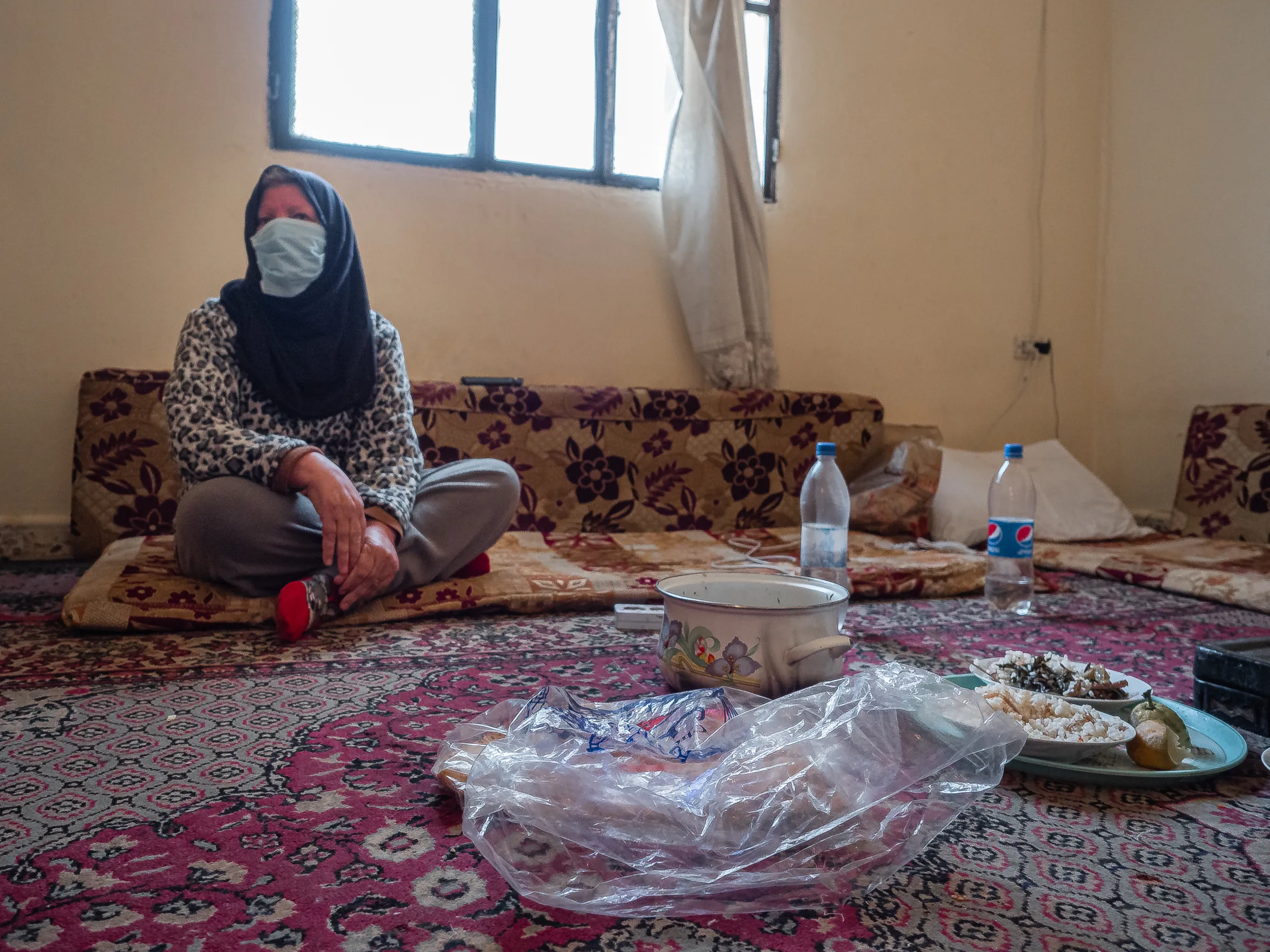 Fawziyya Al-Sahili steht am Herd und rührt in ihrem Gemüseeintopf. „Meine Nachbarn haben mir gestern dieses Essen gebracht. Frisches Gemüse hätten wir sonst keines, Fleisch haben wir seit einem Jahr nicht gegessen. Mit dem Lohn meines Sohnes können wir uns nur Brot, Bohnen und Linsen leisten. So ist das jetzt bei uns.“ Gerade für die 64-Jährige wäre gesunde Ernährung wichtig. Sie hat Bluthochdruck und Diabetes.