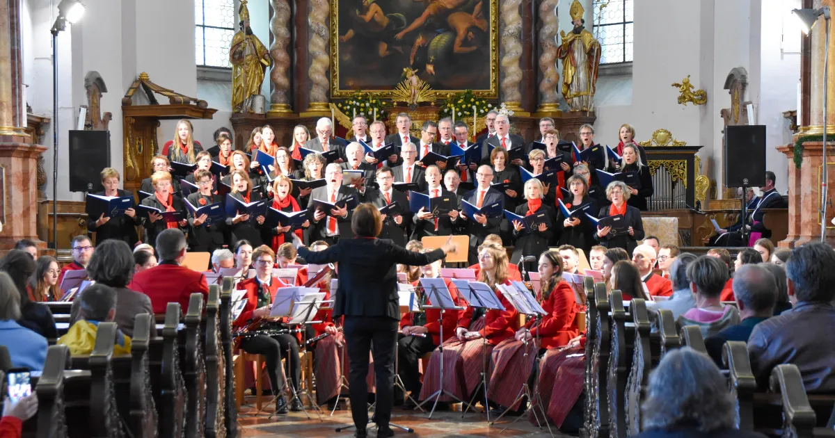 Eva Hubauer, die Leiterin der Ersten Bauernliedertafel St. Georgen, erzählte uns, sie suche immer nach Themen, die sich wie ein roter Faden durch das Konzertprogramm ziehen. Diesmal sollte es ein Kirchenkonzert werden, denn Kirchen sind akustisch wahnsinnig tolle Konzerträume.