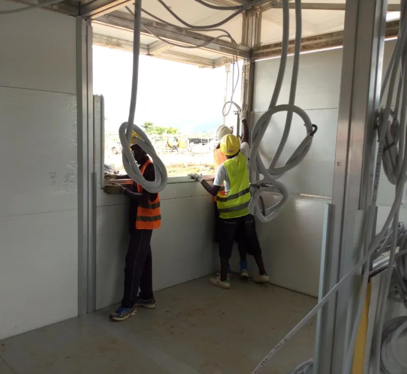 Eine verlässliche Stromversorgung ist lebenswichtig – zum Beispiel bei Operationen oder für die Inkubatoren, die frühgeborenen Babys versorgen. Hier werden Stromleitungen verlegt.
