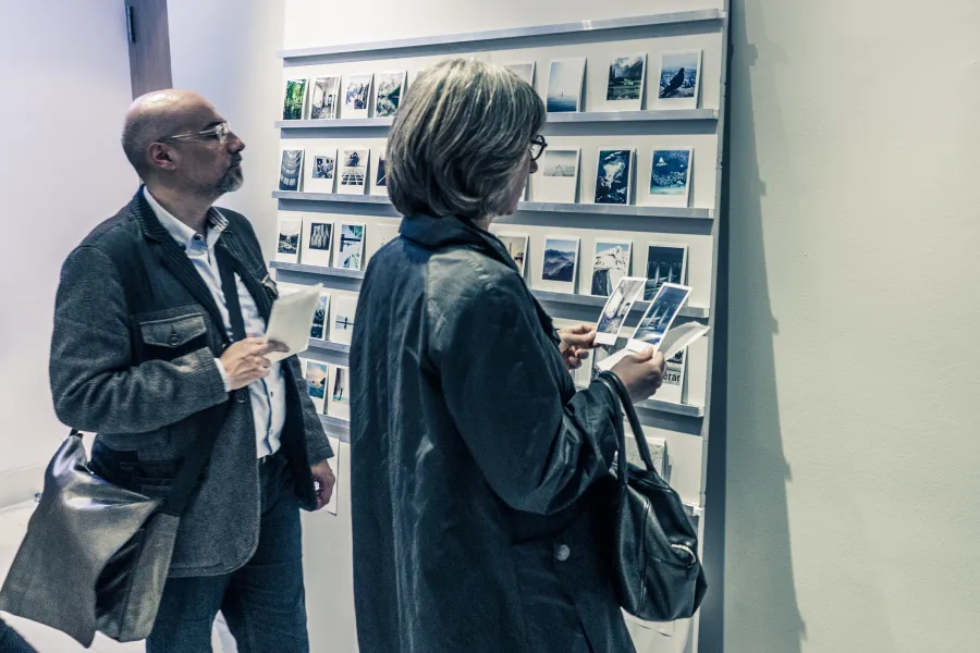 Wien, 19.05.2016: Gäste der Vernissage bei der Auswahl ihrer Lieblingsbilder.