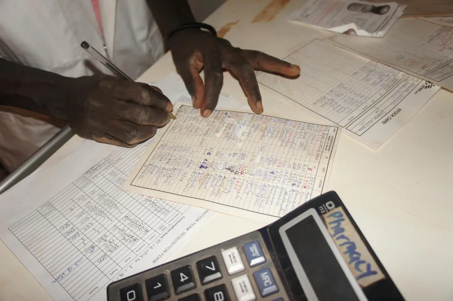 Jeder Artikel hat eine eigene Karte, die wir von Hand ausfüllen © Michi Posch/MSF