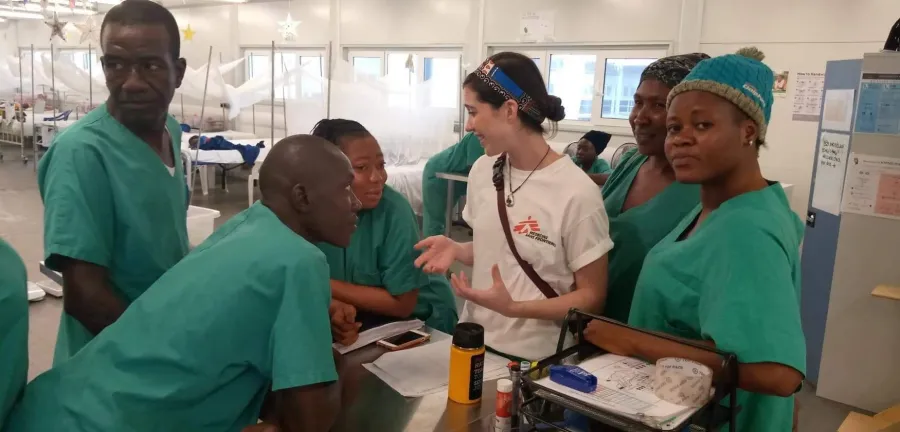 An einem Mittwochmorgen im März versammelten sich das medizinische Personal vor den Türen des neuen Krankenhauses von Ärzte ohne Grenzen im Distrikt Kenema, Sierra Leone. Gekleidet in einem grünen Kittel warteten sie gespannt; das Morgenlicht durchflutete das das leere Gebäude in der Stadt Hangha.