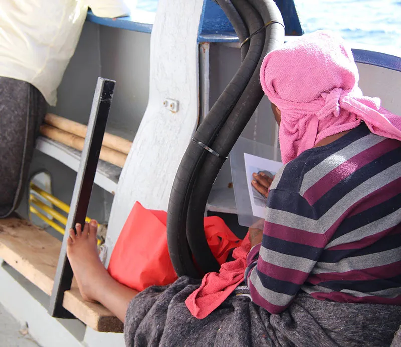 Ein Tag nach der extrem schwierigen Rettung, bereits auf dem Weg nach Italien, geht die Tragödie weiter. Mohammed mag nicht mehr. Sein von einer chronischen Krankheit geschwächter Körper hat bereits zu viel durchgemacht und gibt auf. Er erleidet in unserem Spital einen Herzstillstand. Wir kämpfen um sein Leben zusammen mit dem medizinischen Team der italienischen Küstenwache, welches für die Evakuierung benachrichtigt wurde. Aber auch für ihn ist es zu spät und wir müssen ihn gehen lassen. Seine Frau Constanz trauert um ihn. Wenigstens können wir ihr ein Foto ihres Mohammeds geben, welches ihr hoffentlich bei der Verarbeitung helfen wird. Es ist unglaublich berührend, wie zärtlich sie das Foto die ganze Überfahrt anschaut und fest hält.