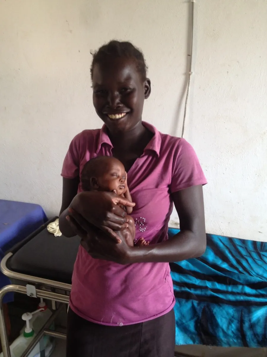 Neben Geburtsbegleitung und Schwangerenvorsorge betreut unser Team außerdem auch schwangere Frauen, welche mit Beschwerden in der Klinik aufgenommen wurden. Dazu zählen auch stillende Mütter, die aufgrund einer Frühgeburt länger in der Klinik bleiben müssen. Nach einer normalen Geburt bleiben die Frauen max. 24 Stunden in unserer Obhut. Wenn sich ein Baby entschließt, früher zur Welt zu kommen, bleibt meist keine Zeit mehr, um die Frau ins Krankenhaus nach Aweil zu transferieren und die Geburt findet bei uns statt.