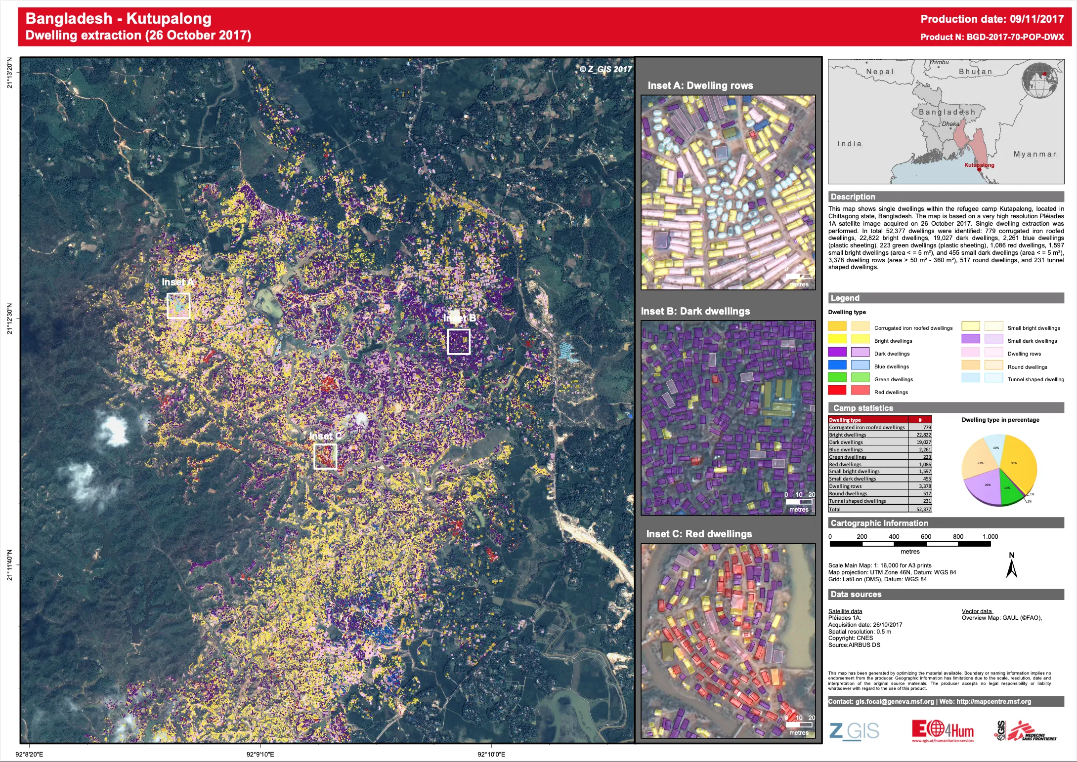 Diese Karten geben Aufschluss darüber, wie viele Gebäude, Hütten oder Zelte in dem Gebiet von Interesse existieren. Dabei können unterschiedliche Typen an Behausungen unterschieden werden. Durch Erfahrung weiß man in etwa, wie viele Menschen durchschnittlich in einem Gebäude, in einer Hütte oder in einem Zelt leben. Dadurch ist es möglich, durch die Aufnahmen abzuschätzen, wie viele Menschen in einem Gebiet leben.