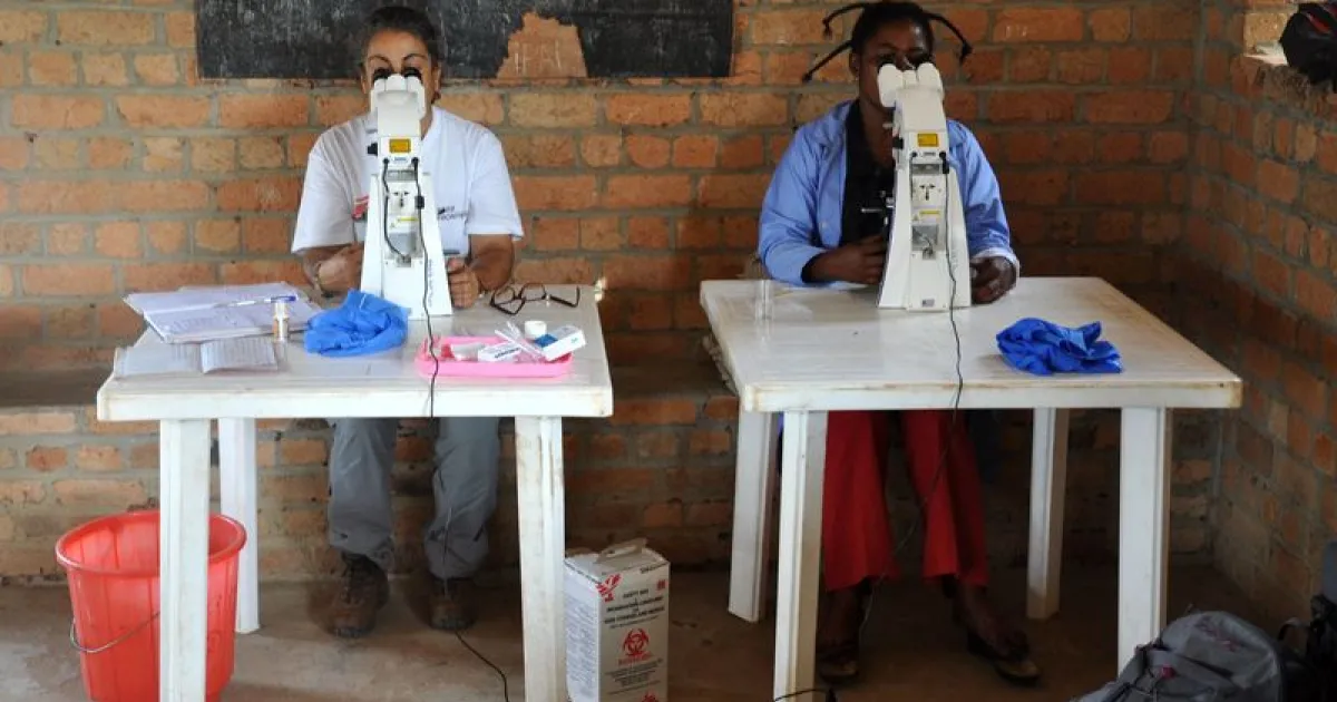 Unser Team untersucht im mobilen Labor die Untersuchungsproben auf die Schlafkrankheit (c) Ralf Ohnmacht/MSF