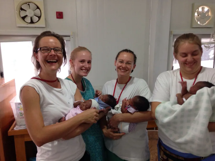 Unsere Hebamme Nina Egger mit Kolleginnen bei ihrem Einsatz in Haiti Ende 2016 (Foto: 2. von rechts).