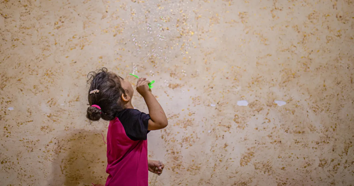 Wir versuchen zu helfen – mit kleinen Momenten des Friedens und der Normalität. Ich blase oft Seifenblasen mit ihnen.