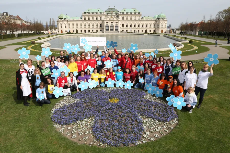 Mit einem Beet voller Vergissmeinnicht setzte am 14. April 2015 „Vergissmeinnicht.at – Die Initiative für das gute Testament“ ein Zeichen für das Engagement zahlreicher Spender und Spenderinnen.