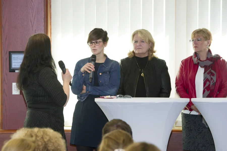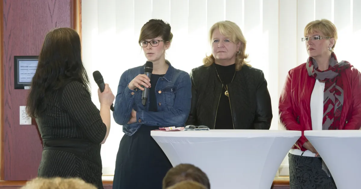 Wien, 18.03.2015: Doris Burtscher und Sandra Bauer von Ärzte ohne Grenzen Österreich mit WGKK-Obfrau Ingrid Reischl und Ministerin Sabine Oberhauser bei der Verleihung.