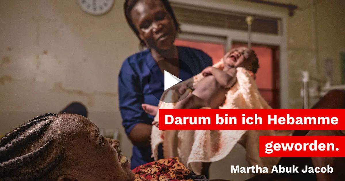 Martha A. Jacob arbeitet als Hebamme in ihrer Heimat im Südsudan. Die Entbindungsstation in Aweil ist klein und hat nur wenige Betten. Der Platz ist knapp, aber die Station ist gut ausgestattet – alle wichtigen Medikamente und Geräte sind vorhanden. Fünf Hebammen versorgen pro Schicht die Frauen, die täglich Hilfe benötigen. Oft ist es so viel Arbeit, dass das Team kaum hinterherkommt.