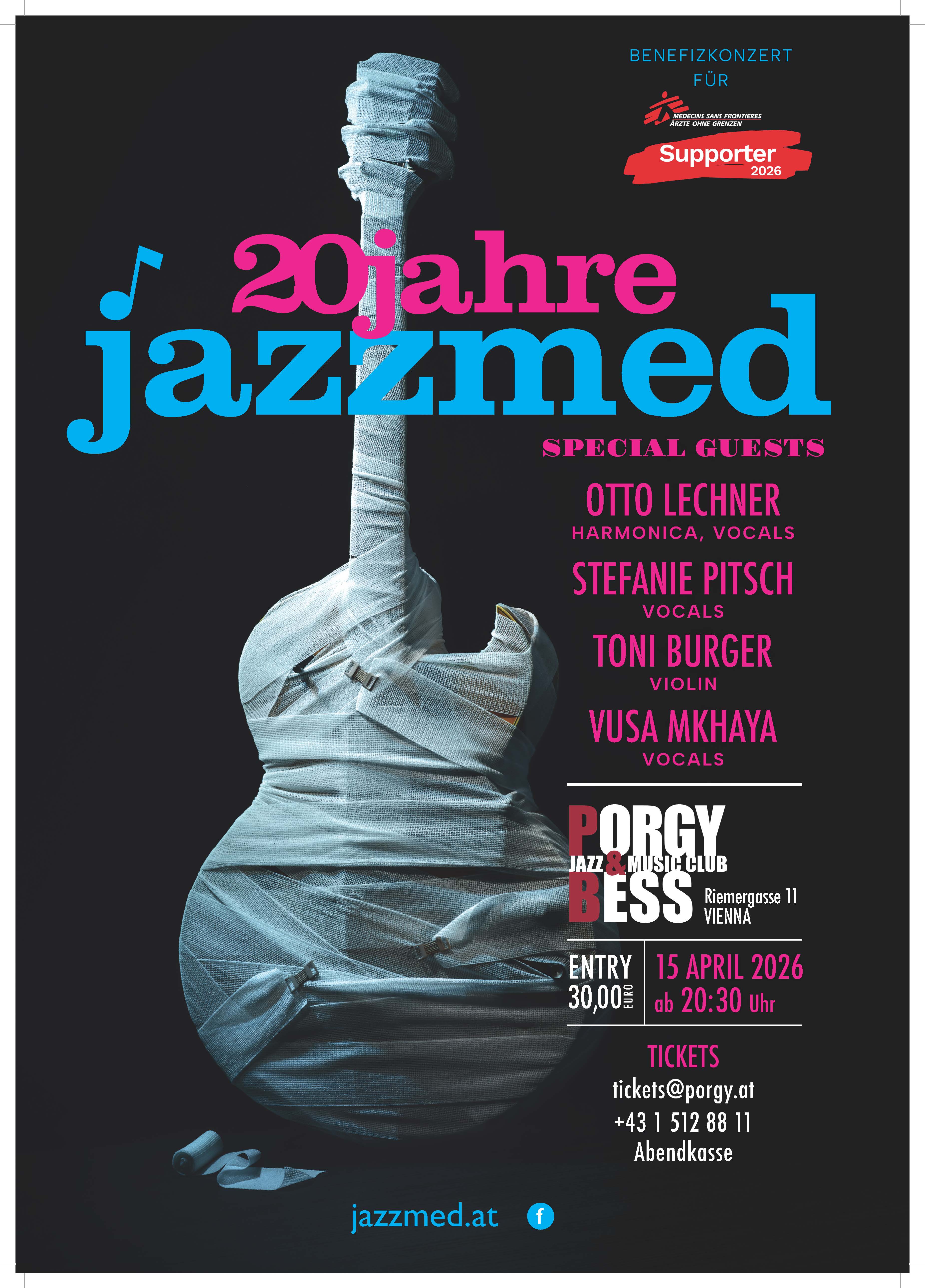 Am Mittwoch, den 15. April 2026, ab 20:30 Uhr feiert JAZZMED 20-jähriges Jubiläum mit einem besonderen Benefizkonzert zugunsten von Ärzte ohne Grenzen im Wiener Jazzclub Porgy & Bess.
