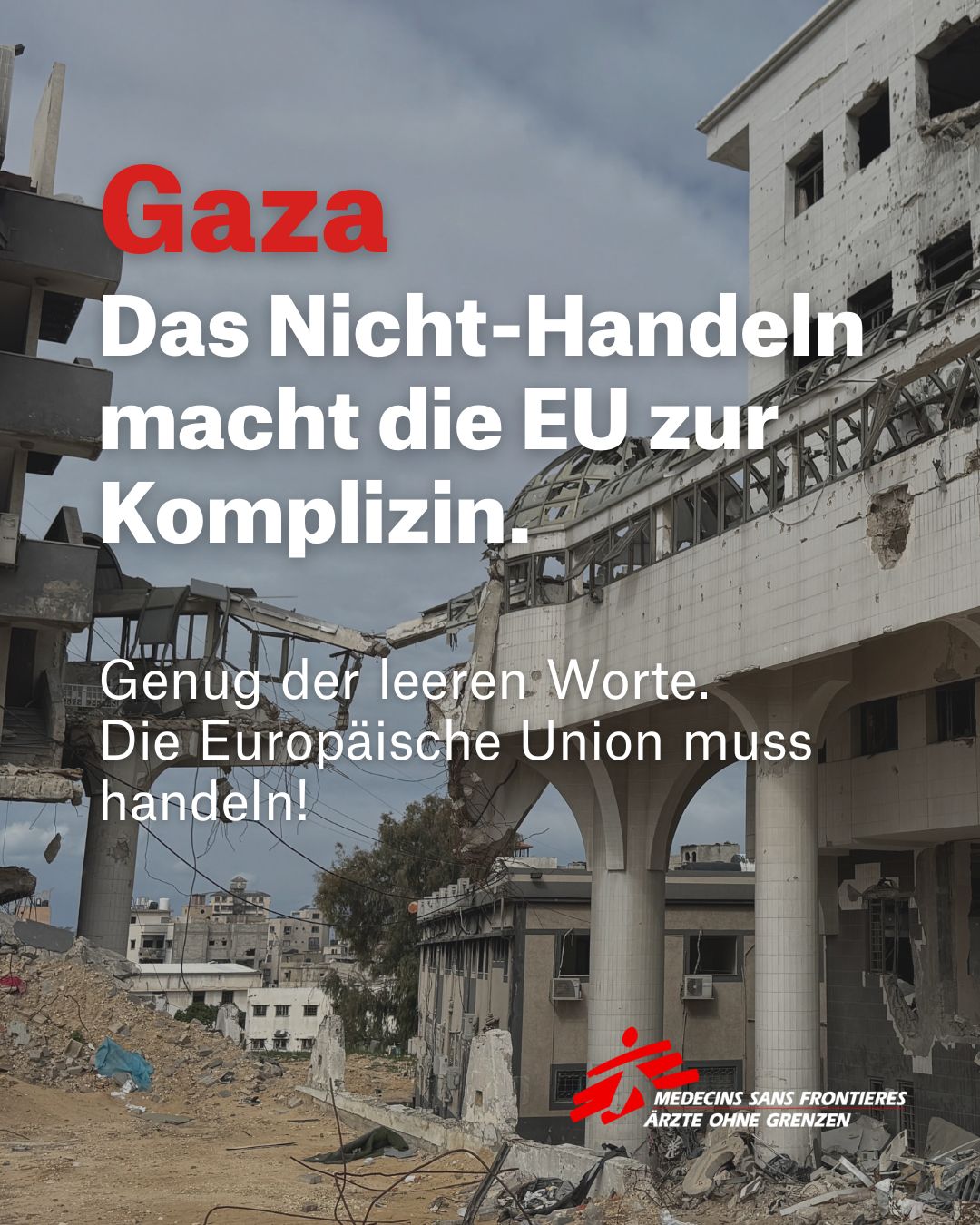 • Gaza: Das Nicht-Handeln macht die EU zur Komplizin. Genug der leeren Worte. Die Europäische Union muss handeln!
