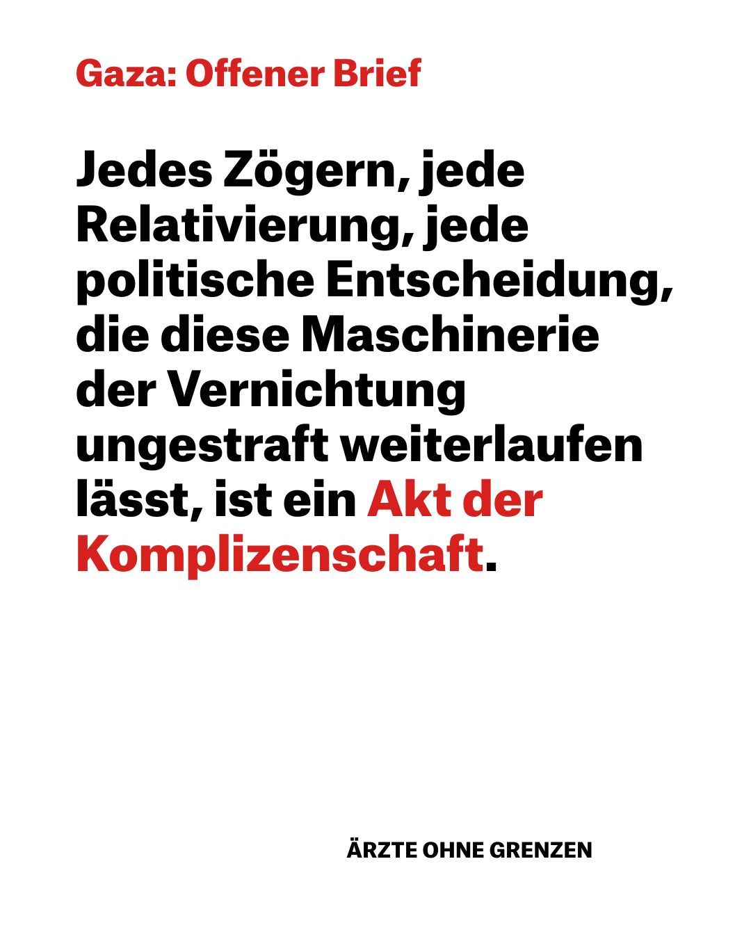 • Gaza: Offener Brief. Jedes Zögern, jede Relativierung, jede politische Entscheidung, die diese Maschinerie der Vernichtung ungestraft weiterlaufen lässt, ist ein Akt der Komplizenschaft.