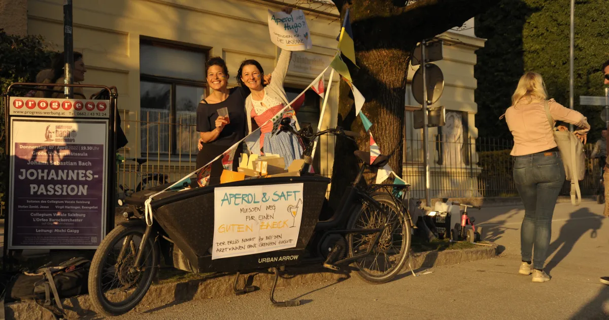 Sie schenkten Aperol, Hollerspritzer und Hollersaft gegen eine freiwillige Spende in Salzburg aus. Die Aktion wurde von den Passant:innen sehr gut aufgenommen. Für einen guten Zweck zu spenden und auch noch ein schmackhaftes Getränk zu bekommen, bei loungiger Musik den Alltagsstress zu vergessen, das hat den Leuten sichtlich Freude bereitet. So kamen innerhalb von nur 4 Stunden 800 Euro zusammen.