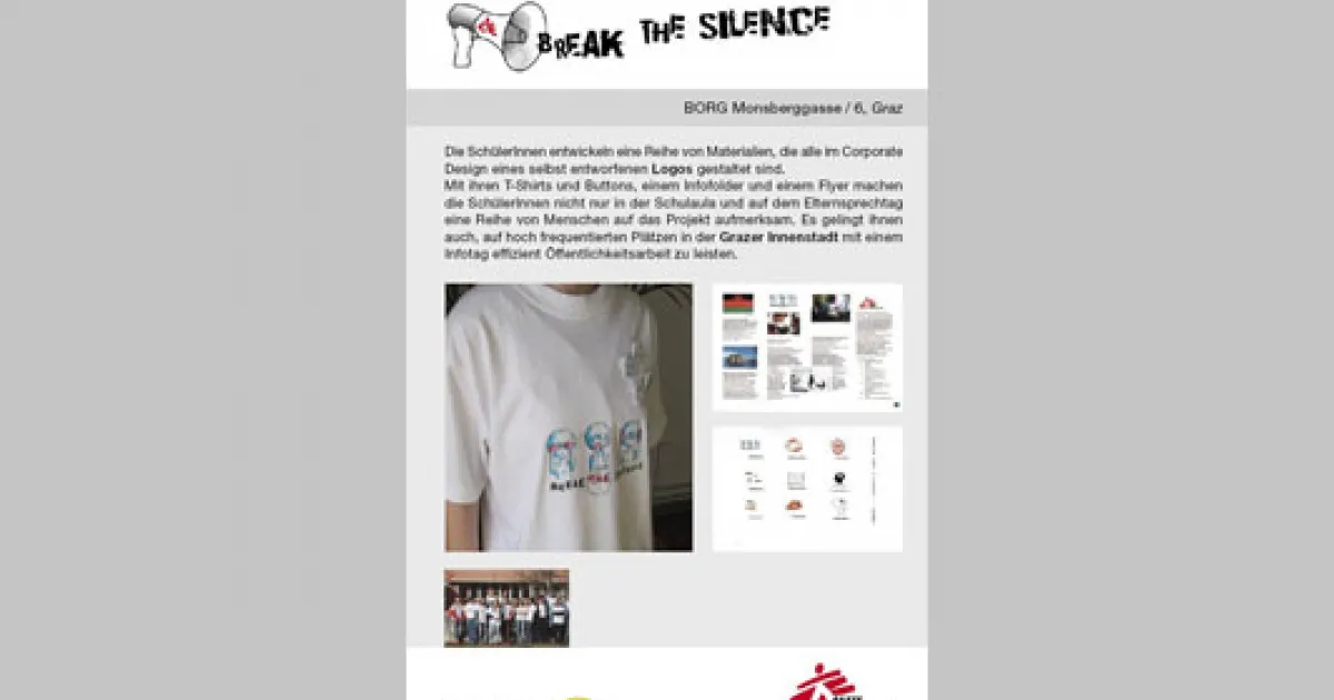 Mit ihren T-Shirts und Buttons, einem Infofolder und einem Flyer machen die SchülerInnen nicht nur in der Aula der Schule und auf dem Elternsprechtag eine Reihe von Menschen auf das Projekt aufmerksam. Es gelingt ihnen auch, auf hoch frequentierten Plätzen in der Grazer Innenstadt mit einem Infotag effizient Öffentlichkeitsarbeit zu leisten.