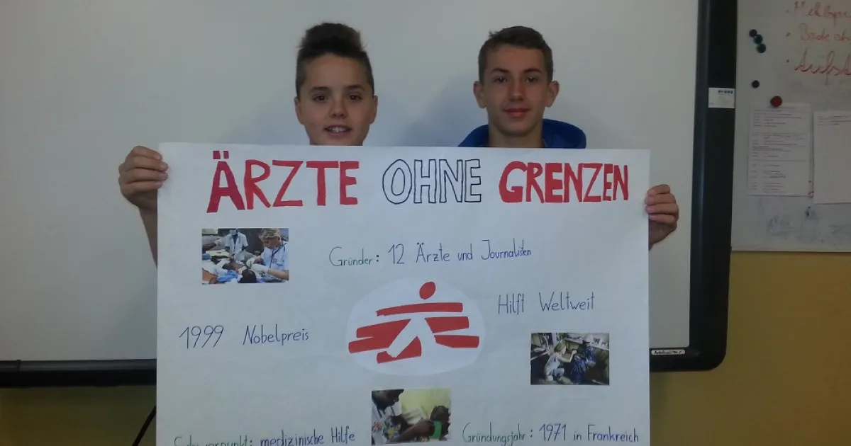 Im Religionsunterricht lernen die Schülerinnen und Schüler Ziele und Aufgaben von Ärzte ohne Grenzen kennen und präsentieren ihre Ergebnisse in einer Ausstellung am Elternsprechtag und am Tag der Offenen Tür.