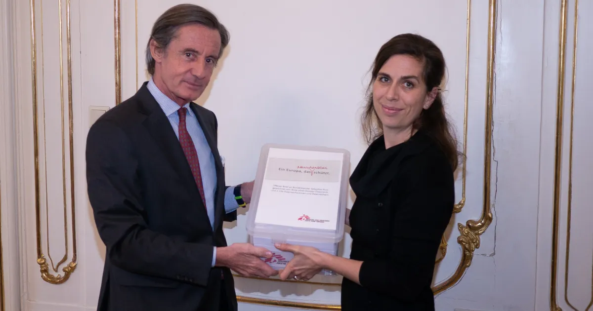 Ärzte ohne Grenzen übergibt Solidaritätsbekundungen zum Mittelmeer-Einsatz an Bundeskanzler Sebastian Kurz